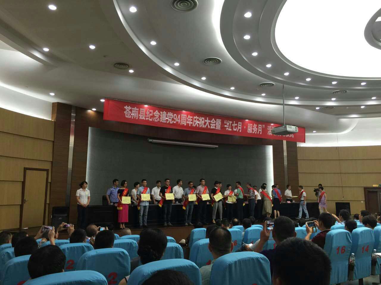 7月1日,在蒼南縣紀念建黨94周年暨“紅七月服務月”啟動儀式上,天信黨委被中共蒼南縣委表彰為“先進基層黨組織”榮譽稱號。同時,公司員工黃華同志被表彰為縣優秀黨務工作者。