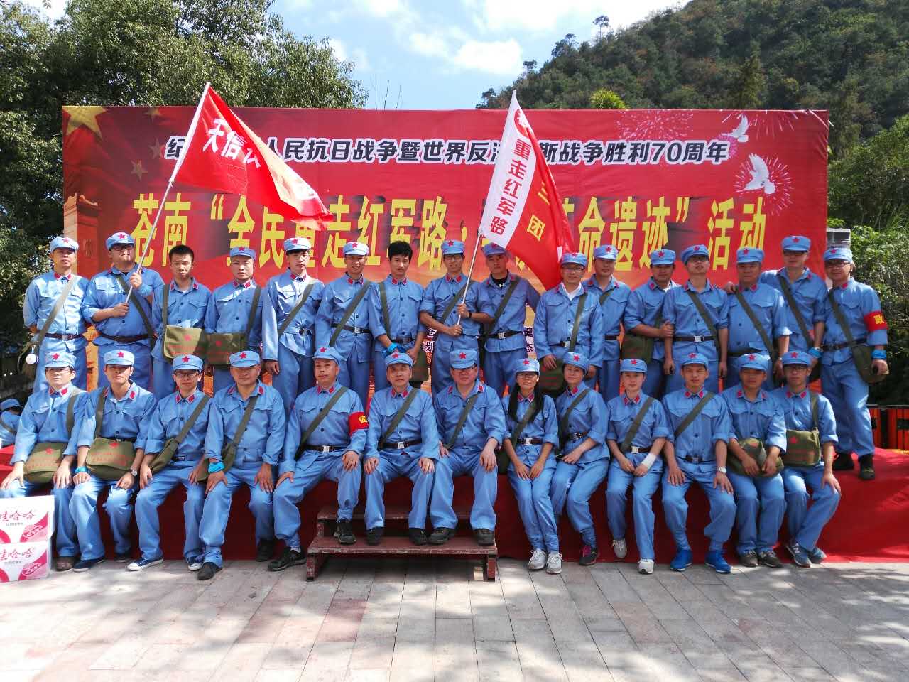身著紅軍服,頭戴紅軍帽,重走紅軍路。10月18日,天信儀表集團30余名員工作為第3紅軍方隊,在團長鄭成平、政委范叔曙的帶領下,參加了溫州市戶外運動協會蒼南分會組織的全民重走紅軍路尋找紅軍遺跡活動。本次活動,從蒼南烈士陵園集合出發,最后到達云巖鄉革命老根據地紀念亭,全程共18公里。
