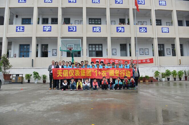 今年是天信儀表集團第二季1+衣送冬衣活動。自去年開始,天信就向廣大員工發起1+衣冬衣捐贈倡議,即捐助一件家中閑置的冬衣,助一個貧困地區的孩子抵御嚴冬。此倡議得到了員工們的積極響應,一件件冬衣被送到了收集點,打成包裹,運往了西部貧困山區。今年9月底,天信就開始籌劃第二季1+衣行動,不僅發動本公司員工捐贈,還鼓勵員工發動身邊的親朋好友參與捐贈,當黨辦主任黃華在朋友圈發出捐贈消息后,次日便收到了初中同學親自送來的上百件有吊牌的全新童裝,其中大部分是即可用上的羽絨服、外套、長褲等,同學還說感謝地說太好了!以后家里有閑置冬衣有地方送了!
