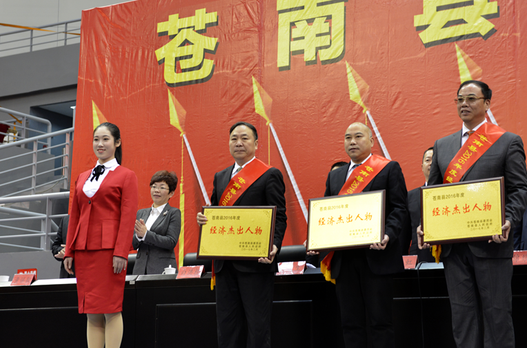 2月4日上午,蒼南縣三級干部大會在縣體育館隆重舉行,此次會議由縣委副書記、代縣長鄭建忠主持,縣委書記黃榮定、縣四套班子領導、全縣鄉(鎮)、村居(社區)和企業等近5000人參加,為蒼南建縣歷史上規模最大、人數最多、層次最高的一次會議。會上,縣人民政府授予天信為2016年度突出貢獻企業,授予天信總裁范叔沙為2016年度經濟杰出人物。