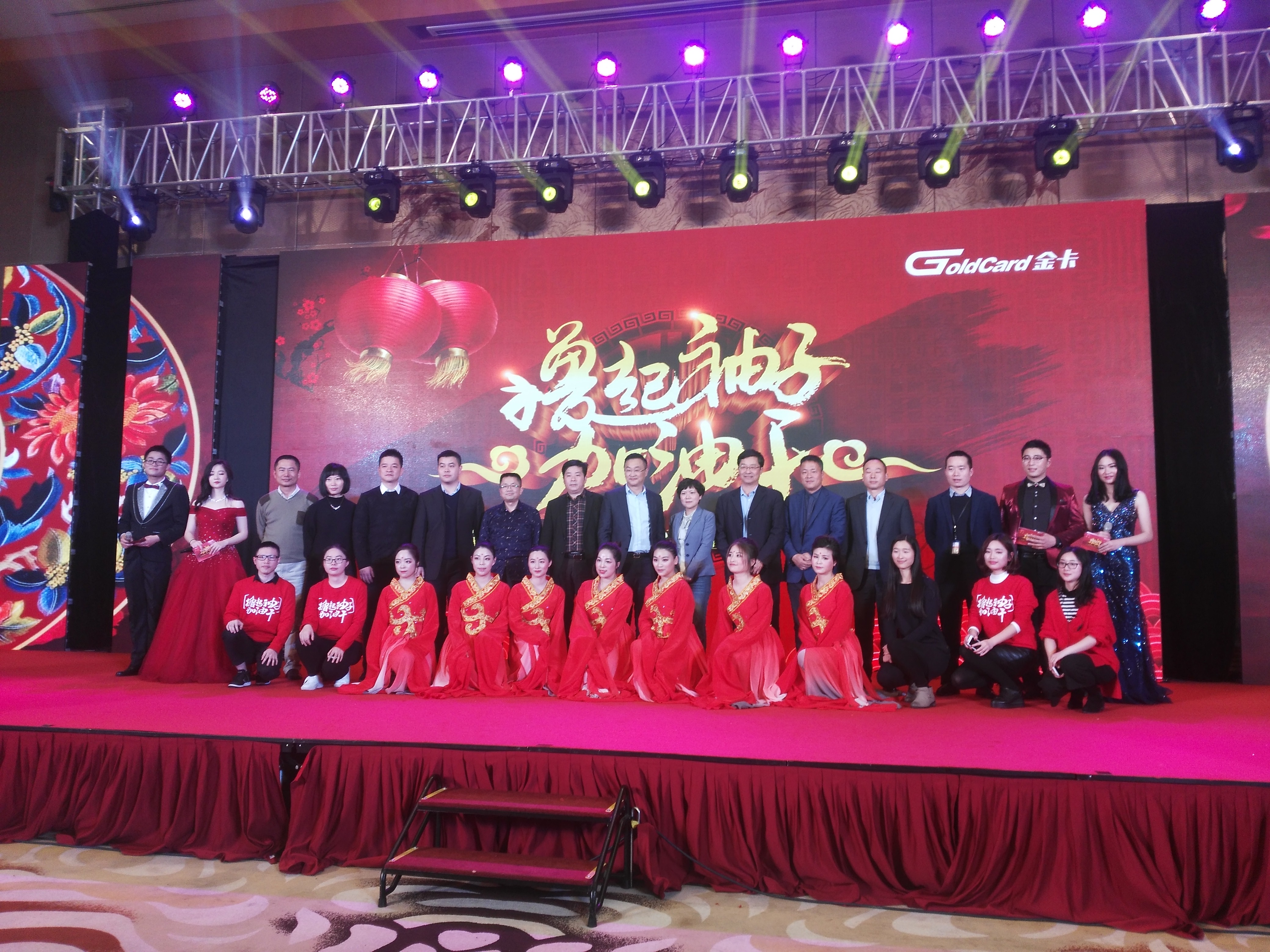 20日下午,一場以擼起袖子加油干為主題的金卡股份2016年度頒獎暨2017年會盛典在杭州希爾頓酒店舉辦,其中我公司也受邀參與到此次年會的節目中。來自供應鏈中心的林運臨、黃君登臺獻唱的閩南語歌曲《愛拼才會贏》,以及由楊小巧、黃君等七位女同事表演的舞蹈《花間夢》兩個節目獲得了全場觀眾陣陣喝彩,這也充分展現了天信團隊積極向上、認真干事的精氣神和對天信金卡一家人情懷的美好祝福。