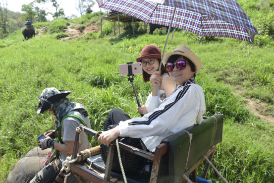 來到清邁,騎大象來趟叢林探險是絕對不能缺少的重頭戲,一般兩人共乘一只大象,并有專業(yè)象師隨行。大象上坡和下坡的時候,走的都是淤泥路,所以大家緊緊地抓住扶手,時時擔(dān)心自己會掉下來。象隊(duì)中,有只叫王寶強(qiáng)的大象很狡猾,有只叫Lady Gaga的大象走得慢悠悠地,還有只大象不愛跟隊(duì)伍走,專愛挑別人不走的有難度的路,讓坐在上面的人備感驚險刺激。 在大象訓(xùn)練營,大家觀看大象表演。在訓(xùn)象師的指揮下,大象除了會跳舞、踢足球、騎車、站立、鞠躬、戴摘帽子,還會自由隨性揮表演獨(dú)特的繪畫天份,精彩的表演讓在場的觀眾掌聲不斷、笑聲不斷。而后大家前往乘坐竹筏,一路上觀賞寧靜的山谷河川及周圍森林美景,河水不深,時而濺起水花,撐來漂去,好不悠閑。