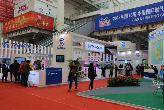 2013年11月13日早上9:00由中華人民共和國住房和城鄉建設部主辦,中國城市燃氣協會、中國城鎮供熱協會承辦的2013年中國國際燃氣、供熱技術與設備展覽會在濟南國際會展中心正式拉開序幕。這次參展的多為國內外知名的燃氣公司。天信也應邀參加了這次的展出。展位設在A01(位于展館入口處左前方第一個)。正對著港華投資有限公司,四周分別是GE德萊塞集團公司,埃爾斯特燃氣公司等知名燃氣集團。由此可見,本次展會群龍聚集,而天信卻獨領風騷,以突出的展示方位,新穎的展臺設計盡顯龍頭之風采。